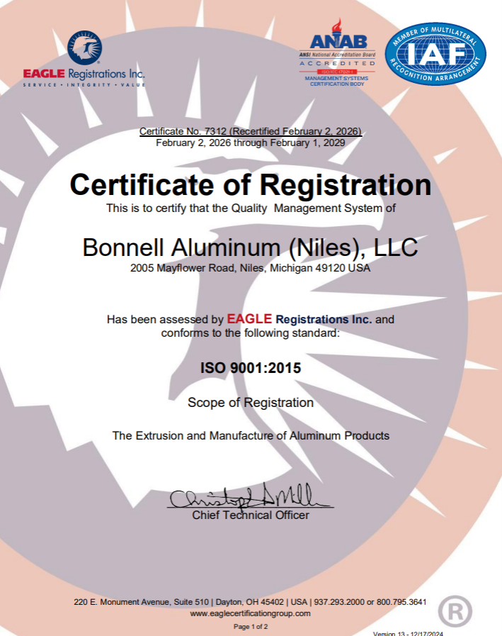 Niles, MI ISO 9001:2015 Certificate of Registration