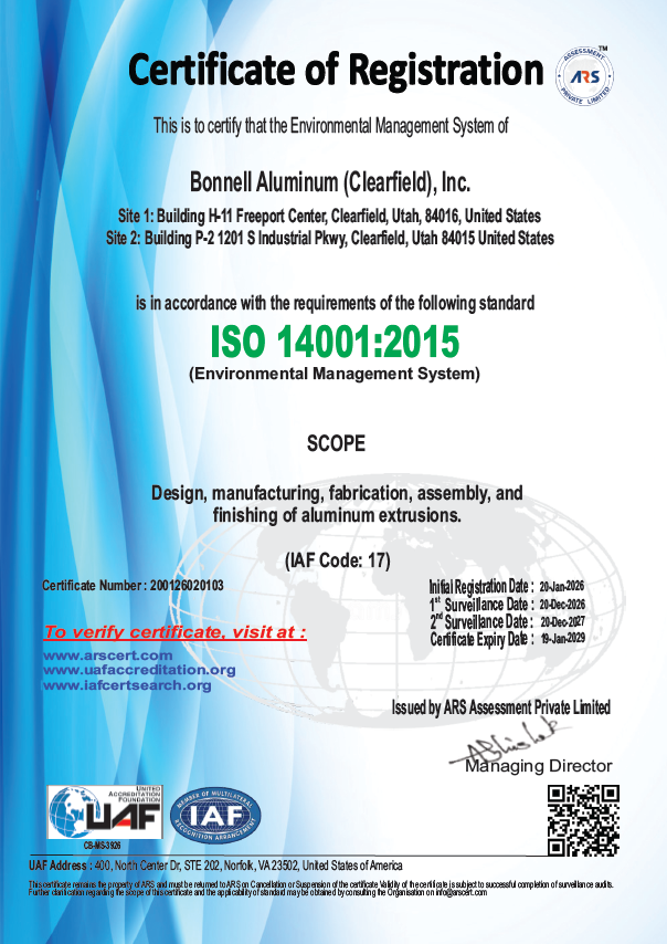 Clearfield, UT ISO 14001:2015 Certificate of Registration