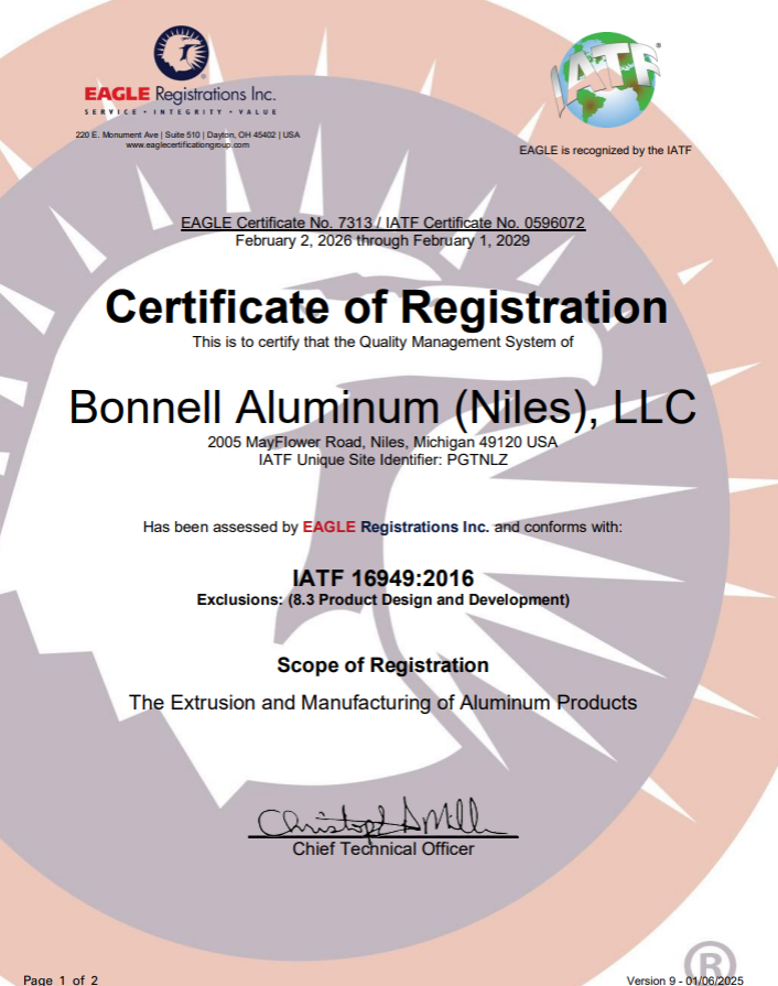 Niles, MI IATF 16949:2016 Certificate of Registration